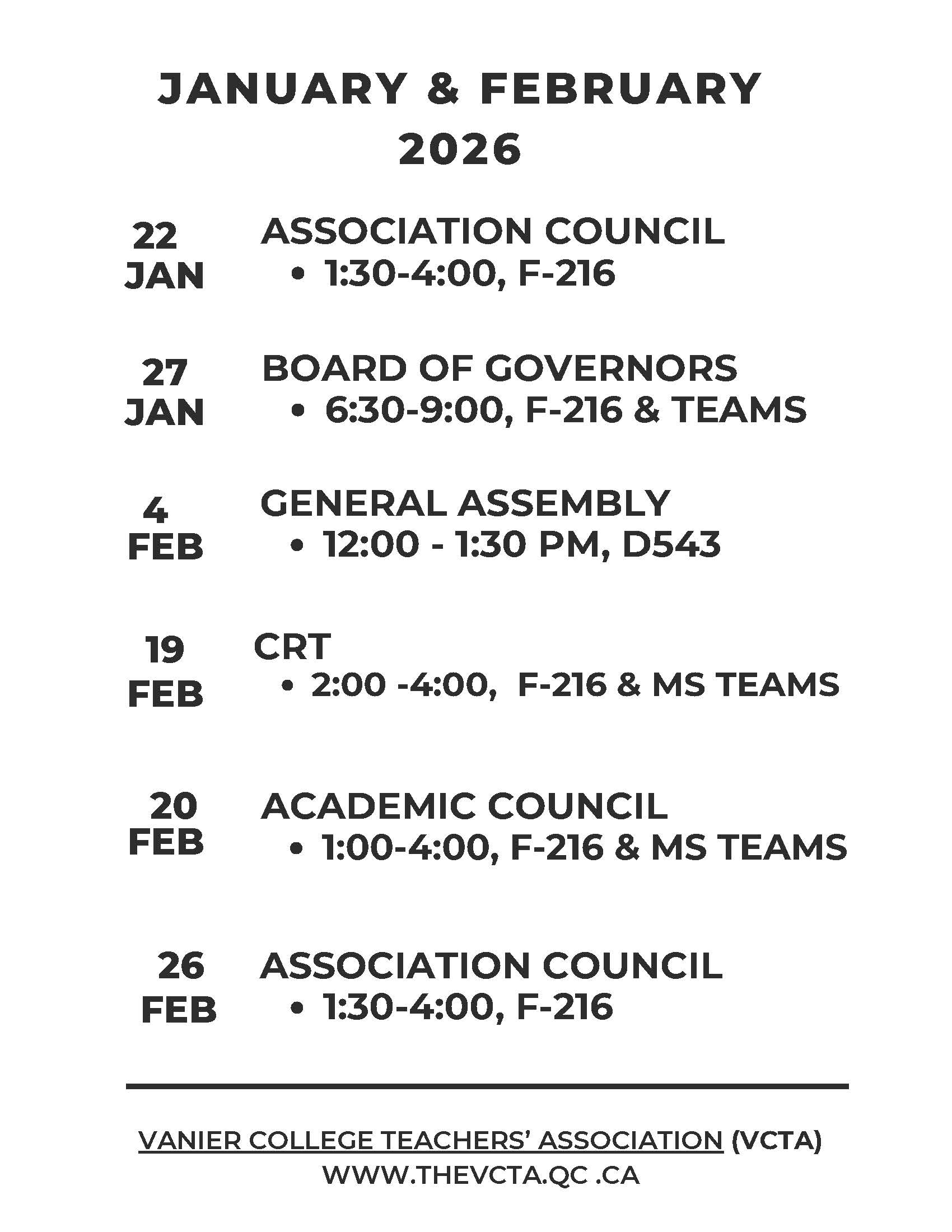 Upcoming Events-January & February 2026
